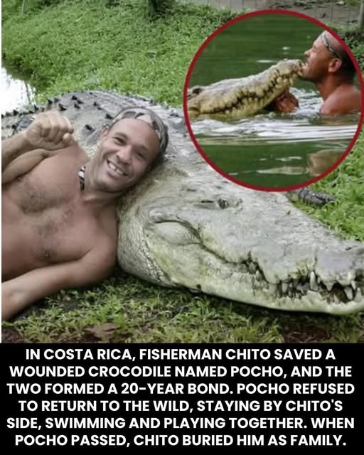 It all began with an act of pure compassion that blossomed into one of the most extraordinary friendships the world has ever known. In Costa Rica, a fisherman named Gilberto “Chito” Shedden stumbled upon a dying crocodile near the Parismina River. This animal, later named Pocho, had been shot by a farmer and was left weak, starving, and abandoned.