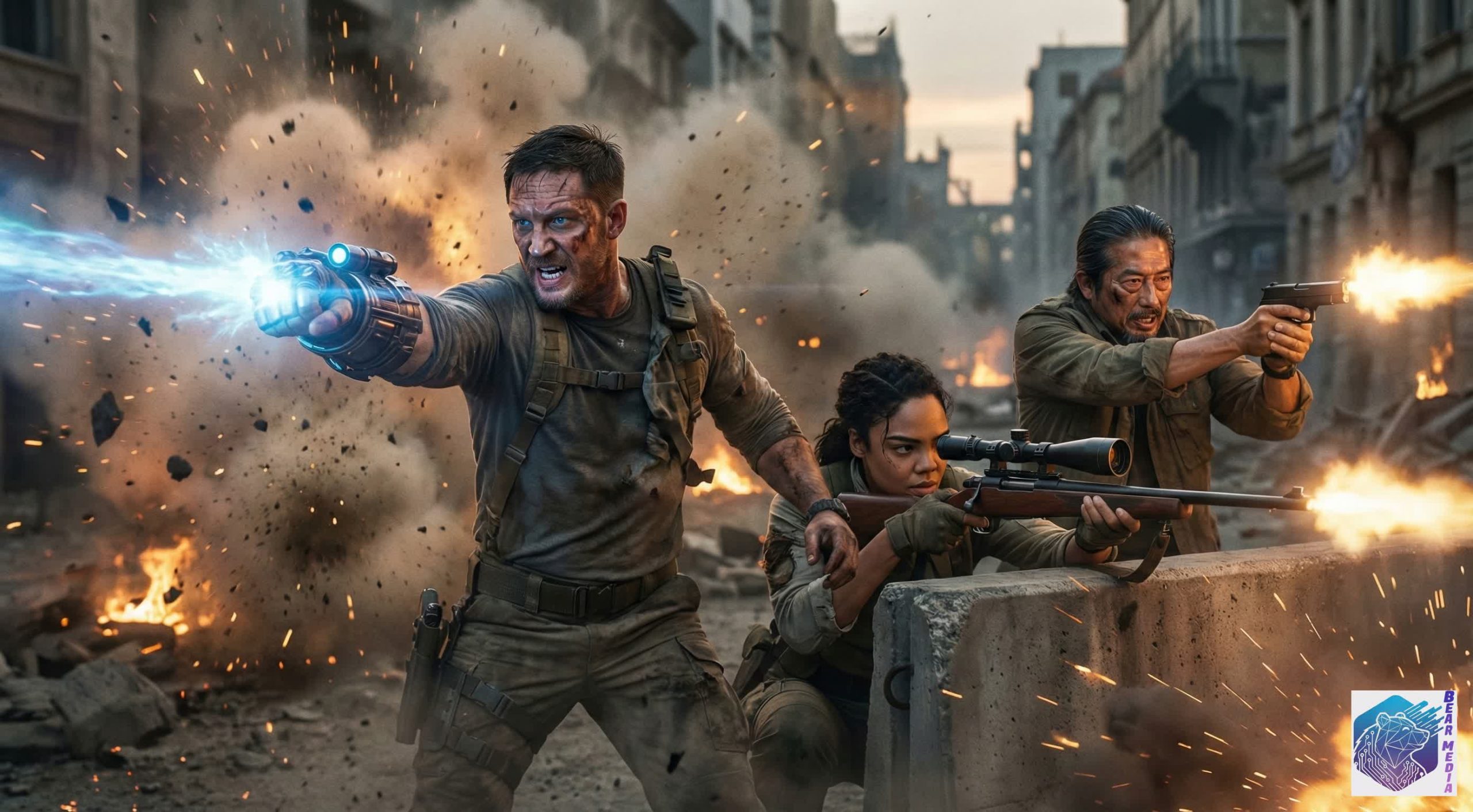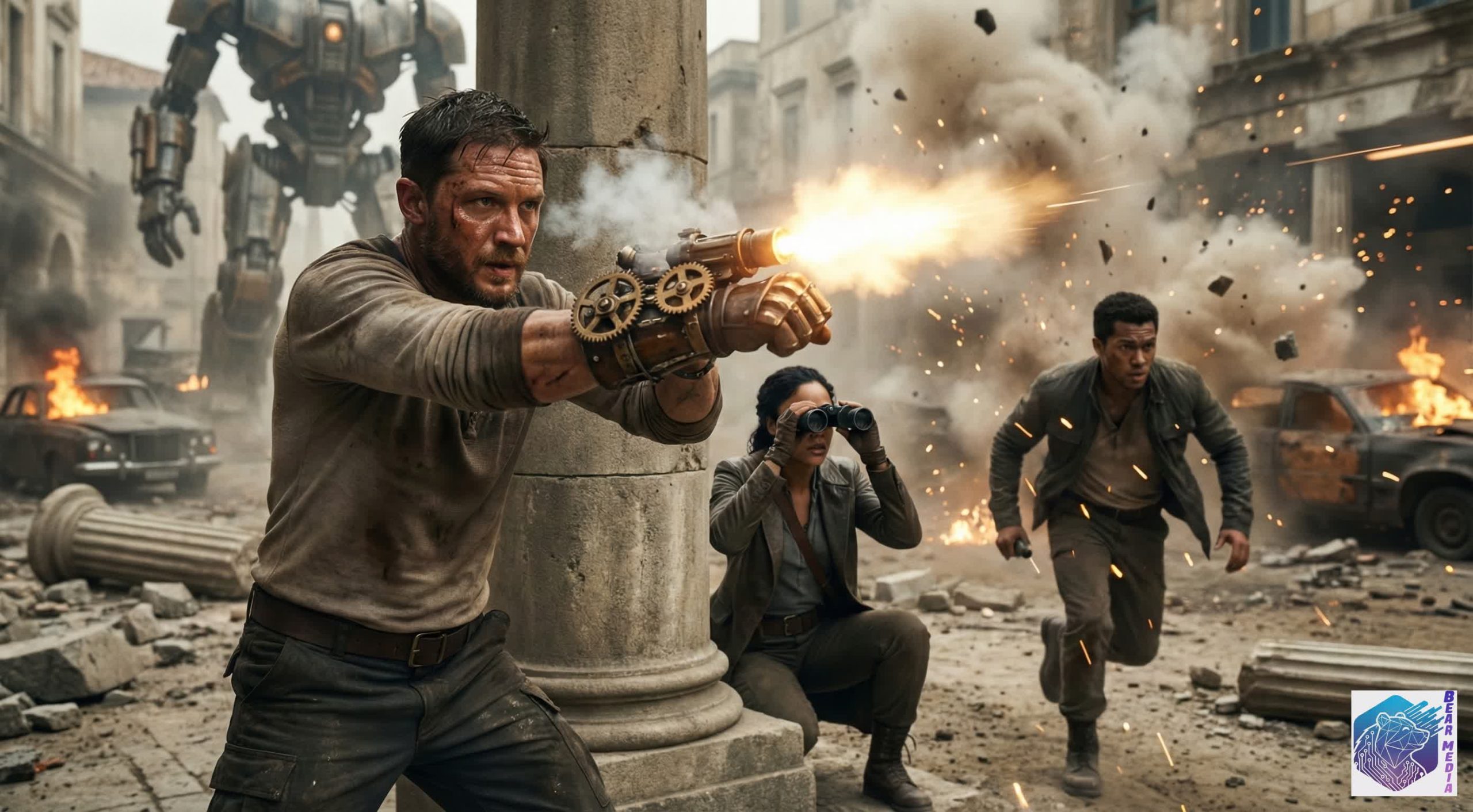 Overview: Get ready to rewind reality! In a breathtaking steampunk apocalypse where gears grind against the heavens, Tom Hardy returns as a rugged scavenger wielding the ultimate weapon—a chronal gauntlet surging with elemental power. Alongside a tactical scout (Thompson) and a veteran warrior (Sanada), humanity launches a desperate assault on the Floating Fortress. The stakes? Survival against a skyscraper-sized Clockwork Colossus that controls history itself. From tank battles amidst ancient ruins to lightning-fueled duels, the visual effects are absolutely electrifying. This is Mad Max meets Bioshock on a massive scale! ![]()