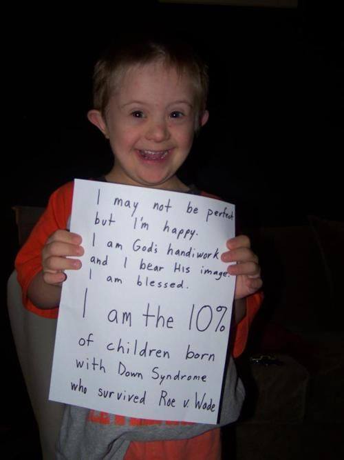 The second half of his message introduces a heavier, more complex theme, though his joyful expression remains absolutely unchanged. He proudly declares: “I am the 10% of children born with Down Syndrome who survived Roe v. Wade.”