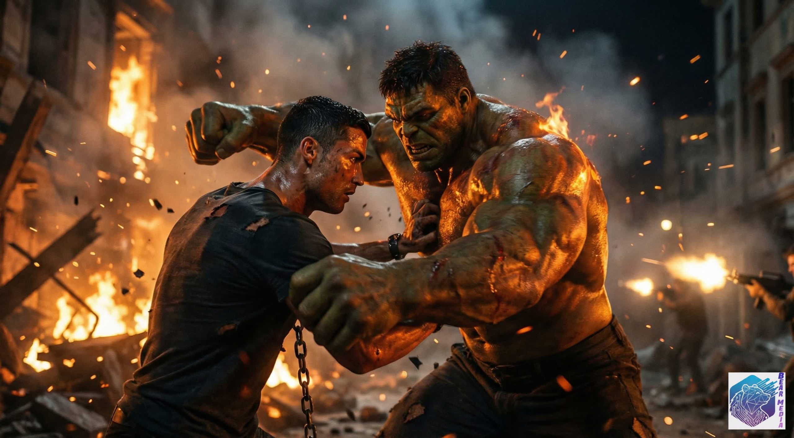 📝 Overview: The world has burned, and from the ashes rises an unstoppable beast. In a shocking cinematic debut, Cristiano Ronaldo trades the stadium for the scorched earth of the apocalypse. The trailer drops us straight into a volcanic nightmare where the global icon stands alone—battered, bruised, and wielding a heavy iron chain—against the looming shadow of a titanic, rage-fueled monstrosity. This isn’t just an action movie; it is a high-octane test of human will. Witness the ultimate clash between elite determination and gamma-radiated fury in the most unexpected survival blockbuster of the decade.