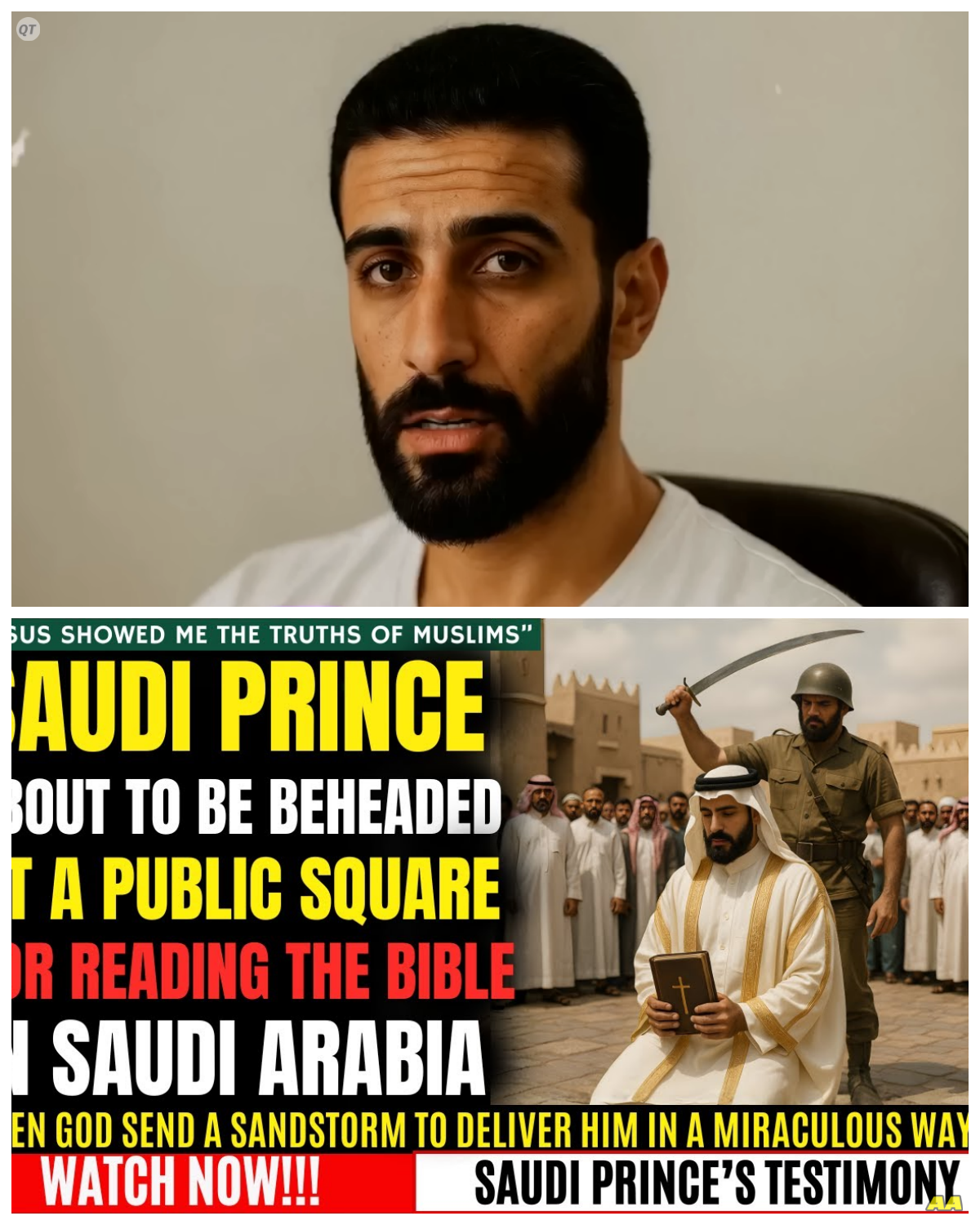 Saudi Prince Faces Execution for Reading Bible, Then JESUS INTERVENED My name is Prince Khaled. I am 33 years old and on a bright morning in Riyad, I was led to the center of Dera Square to be executed for leaving Islam. The sword was raised above my neck and the crowd fell silent. But before the blade could fall, the sky itself turned against the moment. A violent sandstorm swept through the city, blinding everyone in its path. I should have died that day. But God had another plan. Let me tell you how a Sudi prince who once bowed before royal power came to bow before the living Christ. I am the third child of a distant cousin to King Salman. Which means that I was born into a royal family though not into the immediate line of succession. From the day I was born, my life was wrapped in luxury and strict rules. I grew up inside tall palace walls where marble floors shone brighter than mirrors and fountains ran with cold water even in the heat of the desert. Servants bowed when I walked past. Guards stood at every door. My father, Prince Fad, was a respected man known for his devotion to Islam and his loyalty to our family. My mother was gentle, loving, and strong. From her, I learned kindness. From my father, I learned discipline. My earliest memories were of the royal mosque near our palace where I began learning the Quran when I was only 4 years old. Every morning before breakfast, my teacher, Shik Abdul Rahman, would sit with me and my brothers………… Full in the comment 👇