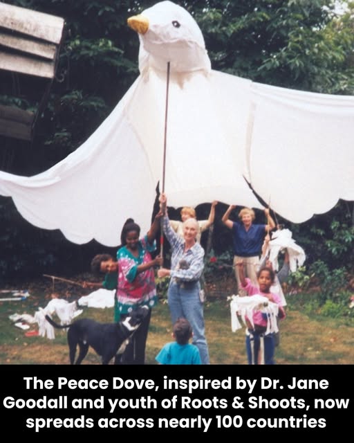 In 2002, Dr. Jane Goodall was named a UN Messenger of Peace, solidifying her decades of advocacy for compassion and environmental stewardship. Alongside this honor, something extraordinary happened — the world saw the unveiling of the first Giant Peace Dove, created by the youth of Roots & Shoots in Wisconsin. What began as a single school project has blossomed into a global symbol of hope and unity, spreading to nearly 100 countries across the globe.